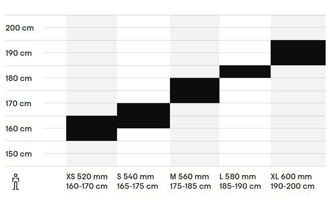 Rāmis: ALU 6061, dubulti izstiepts, 600 mm, maks. riepu klīrenss 45°C